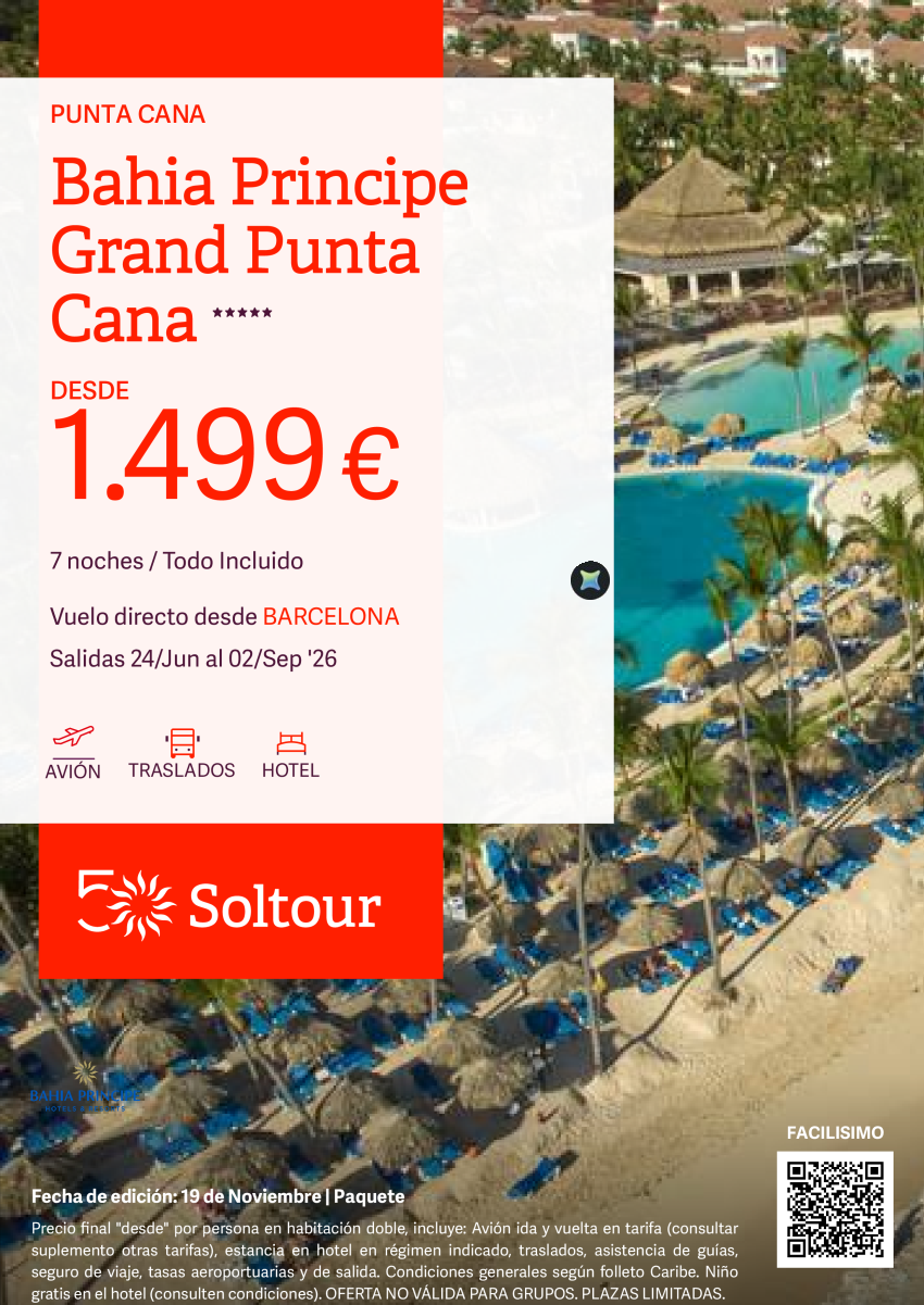 Punta Cana (República Dominicana) en Bahia Principe Grand Punta Cana desde 1.499€, salidas 24 Jun al 2 Sep desde Barcelona