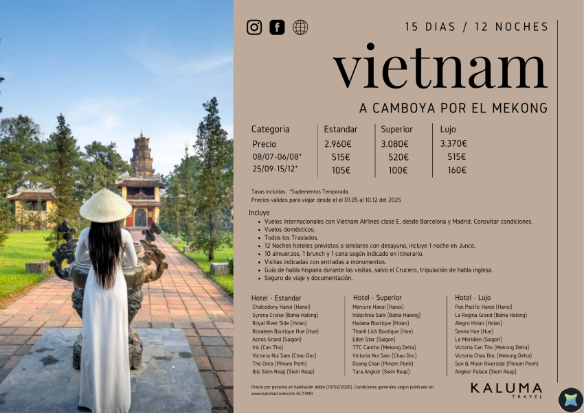 De Vietnam a Camboya por el Mekong 15 Días / 12 Noches - Salidas hasta Junio desde 3.065 €